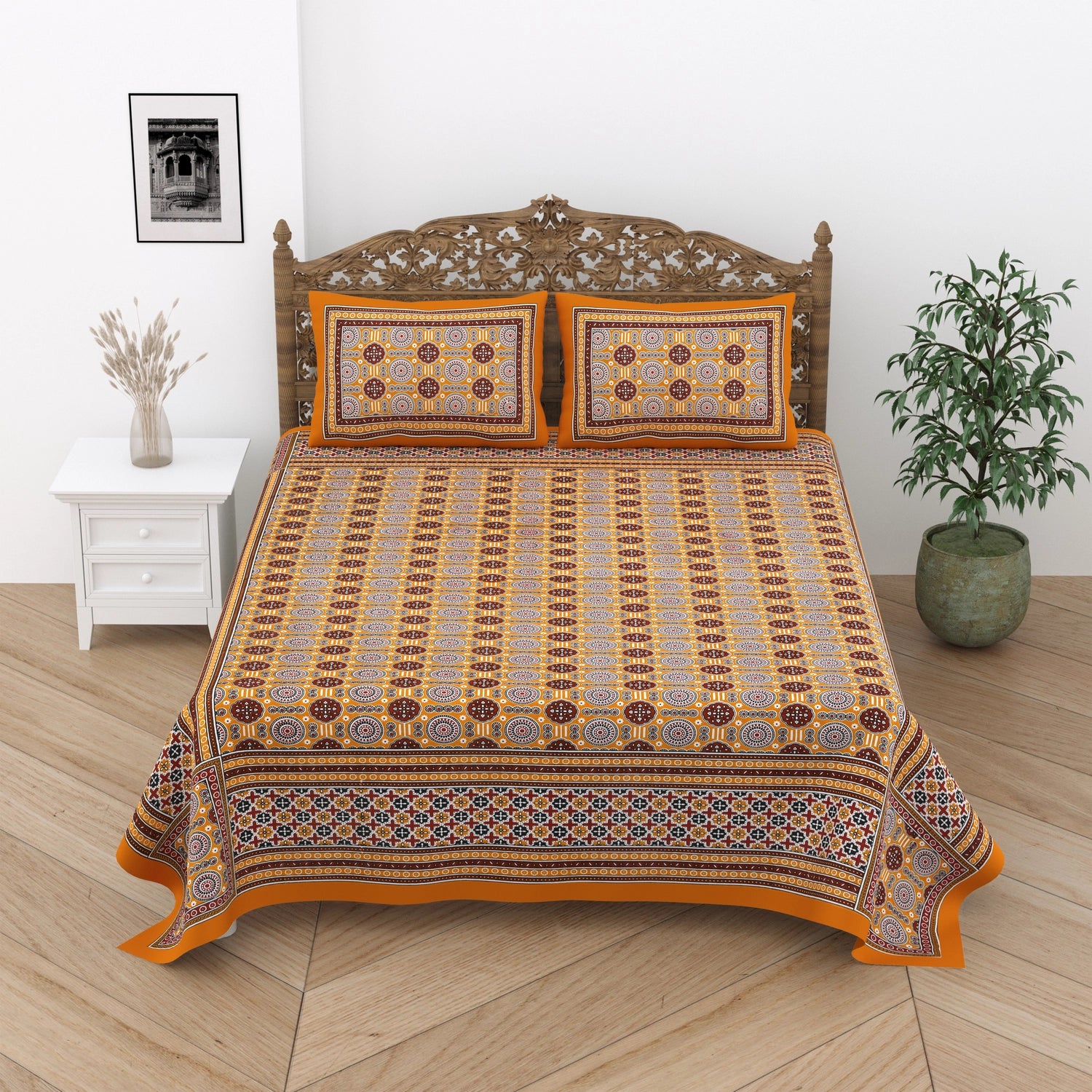 Indulge in the luxury of 100% pure cotton bed sheets adorned with exquisite block prints. Experience the softness and breathability of natural cotton, combined with the timeless artistry of hand-carved wooden blocks. Each bed sheet is a masterpiece, showcasing intricate patterns and vibrant colors that add a touch of elegance to your bedroom. Perfect for a restful night's sleep and a touch of Indian heritage in your home.