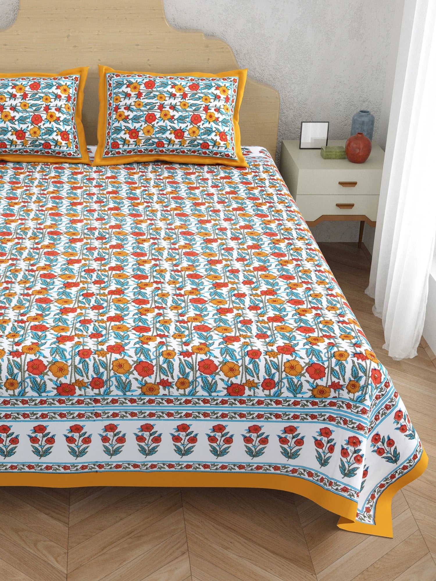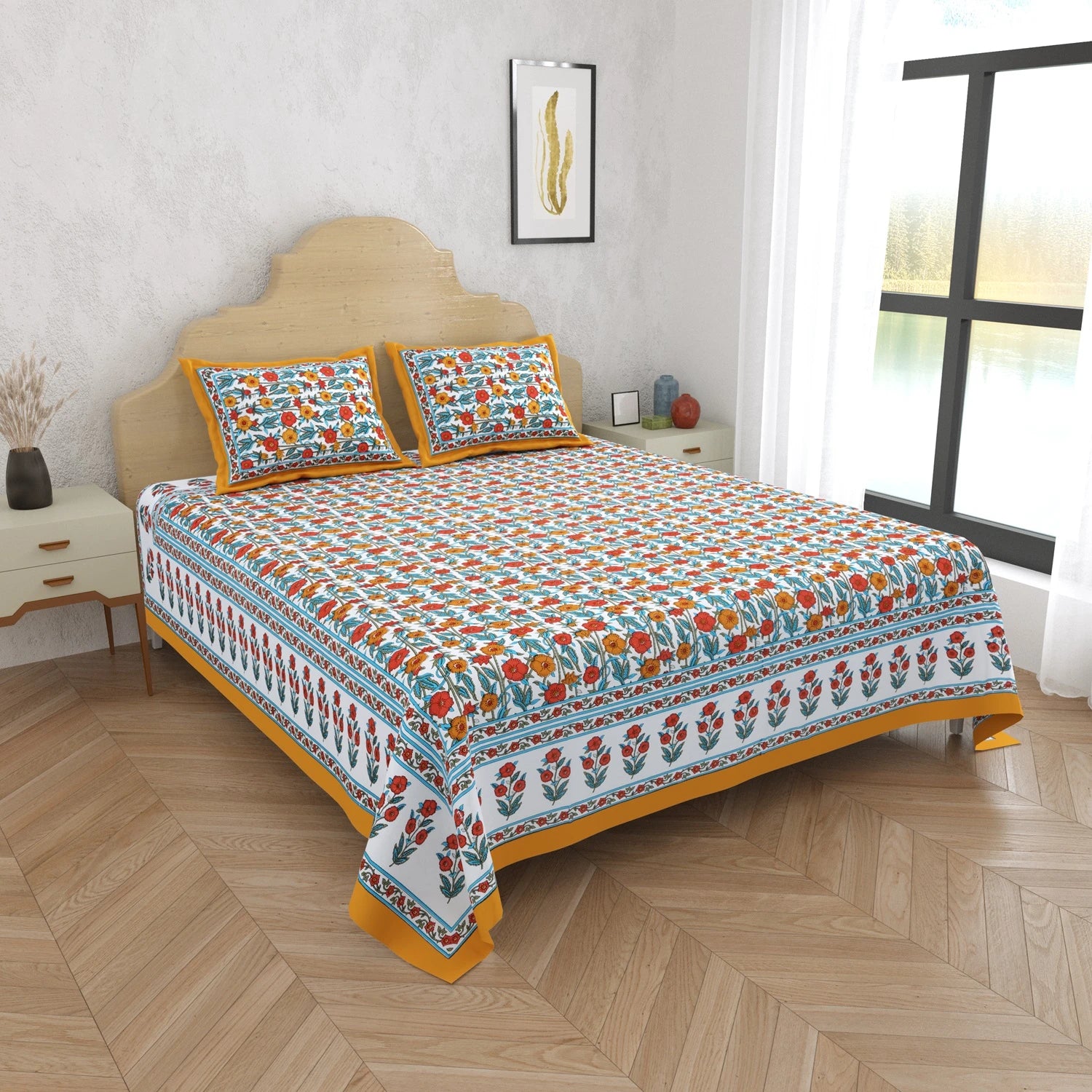 Indulge in ultimate comfort and style with our 100% Pure Cotton Bed Sheet . Crafted from premium quality cotton, it provides exceptional softness and breathability. The intricate hand-block designs elevate its visual appeal and add a touch of artistry to your bedroom.