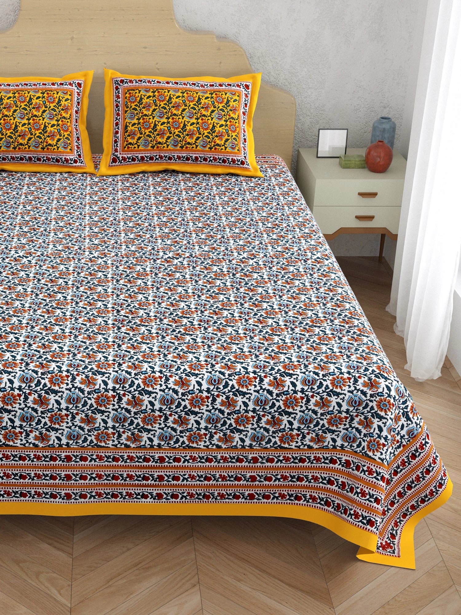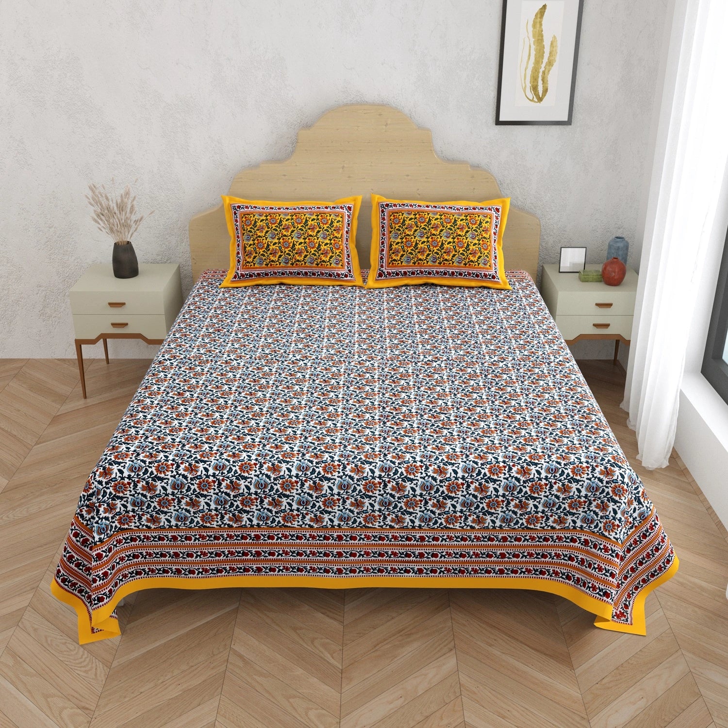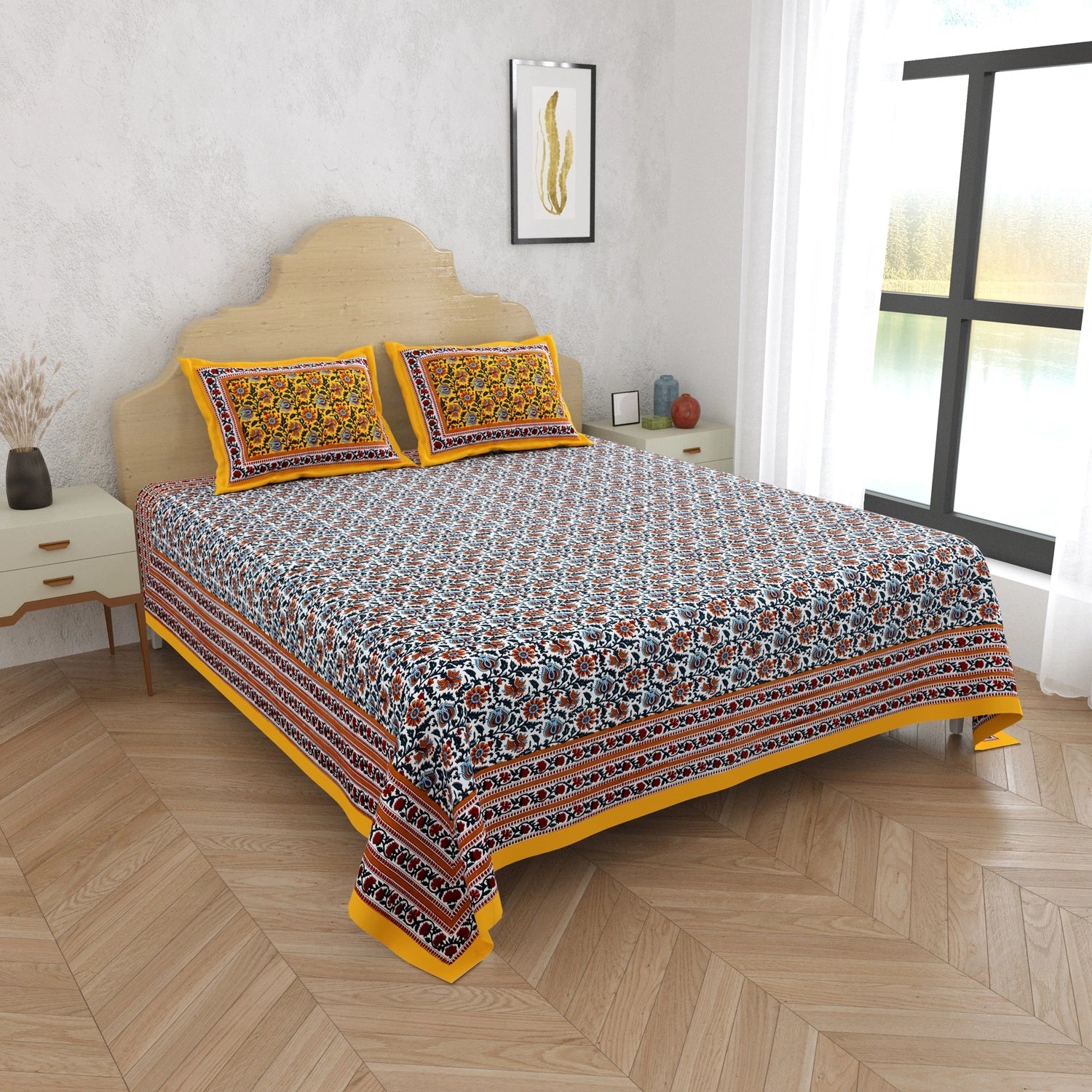 Indulge in ultimate comfort and style with our 100% Pure Cotton Bed Sheet . Crafted from premium quality cotton, it provides exceptional softness and breathability. The intricate hand-block designs elevate its visual appeal and add a touch of artistry to your bedroom.