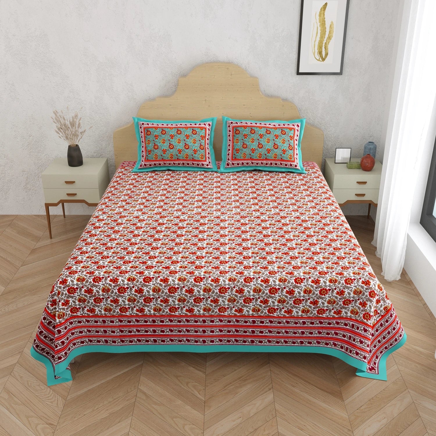 Indulge in ultimate comfort and style with our 100% Pure Cotton Bed Sheet . Crafted from premium quality cotton, it provides exceptional softness and breathability. The intricate hand-block designs elevate its visual appeal and add a touch of artistry to your bedroom.