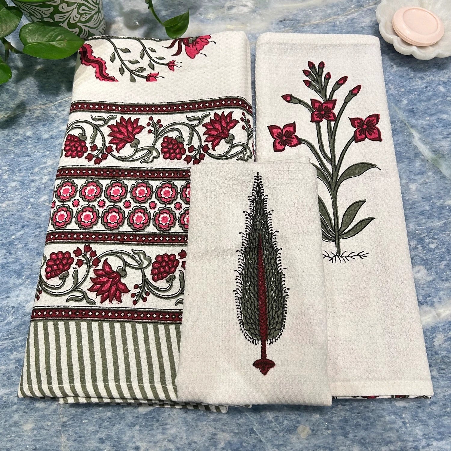 Our towels are a pure combination of waffle cotton and block printing, resulting in exceptionally soft, absorbent, and uniquely patterned bath essentials.