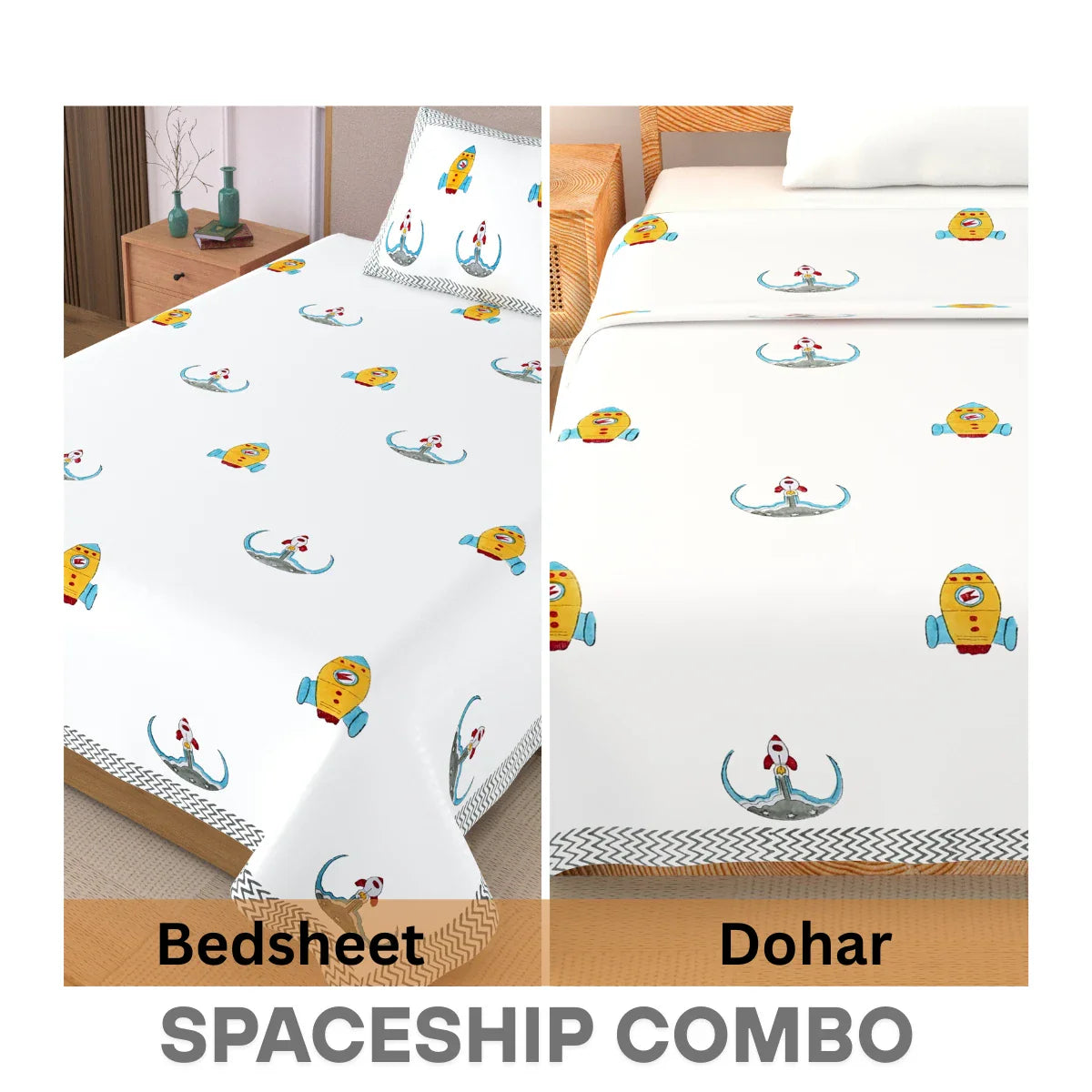 Rocket Space Kids Bedding Combo – Bedsheet (60x90 Inches) & Dohar (40x60 Inches) Set