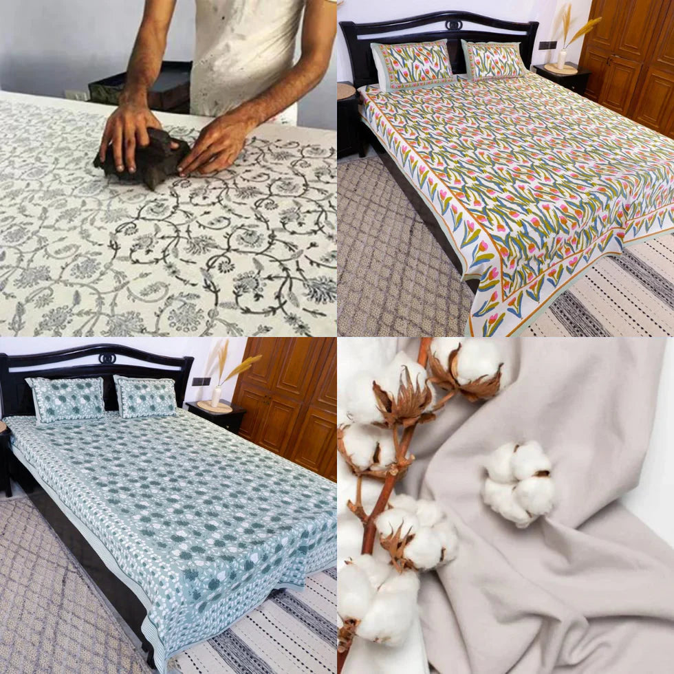 Indulge in ultimate comfort and style with our 100% Pure Cotton Bed Sheet . Crafted from premium quality cotton, it provides exceptional softness and breathability. The intricate hand-block designs elevate its visual appeal and add a touch of artistry to your bedroom.