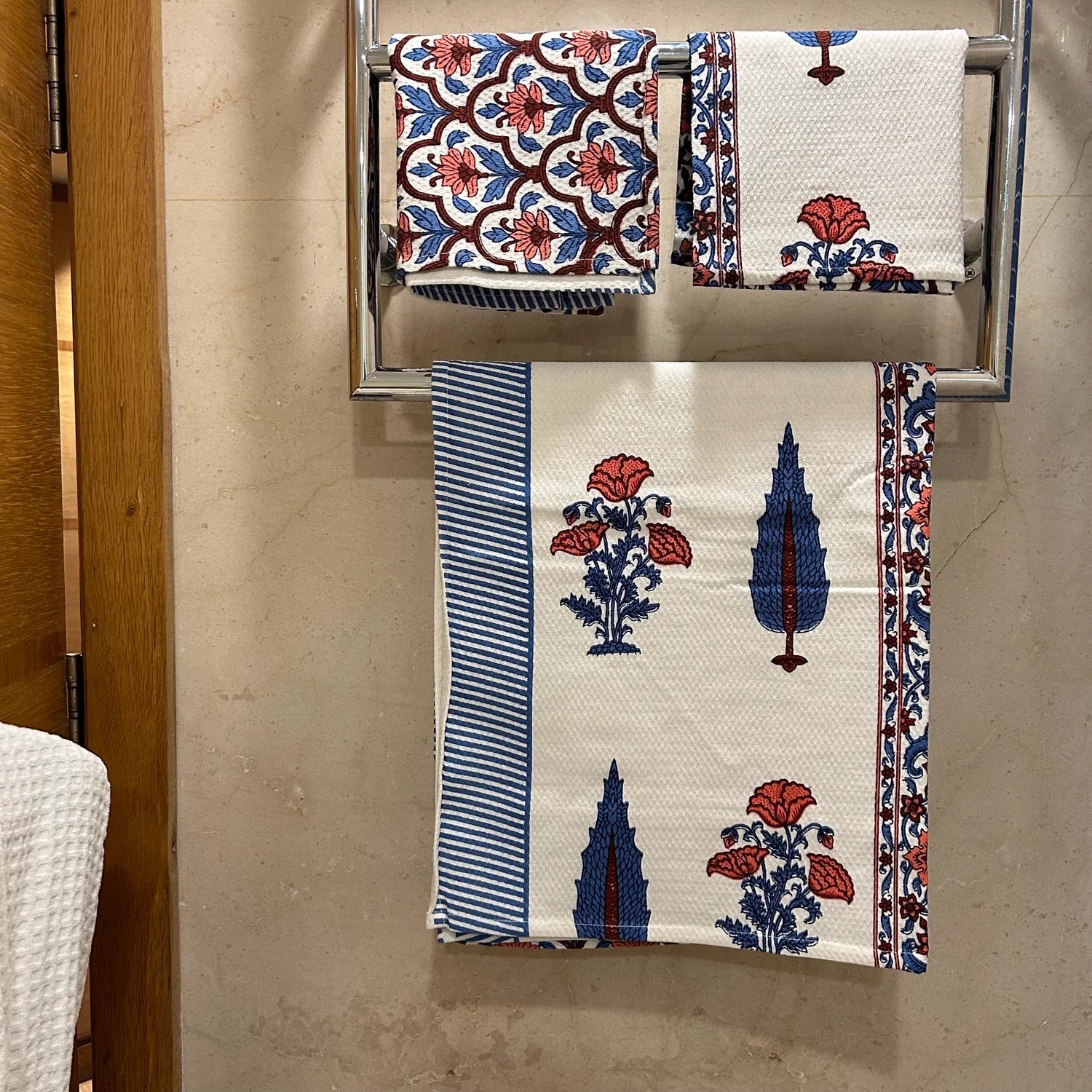 Our towels are a pure combination of waffle cotton and block printing, resulting in exceptionally soft, absorbent, and uniquely patterned bath essentials.